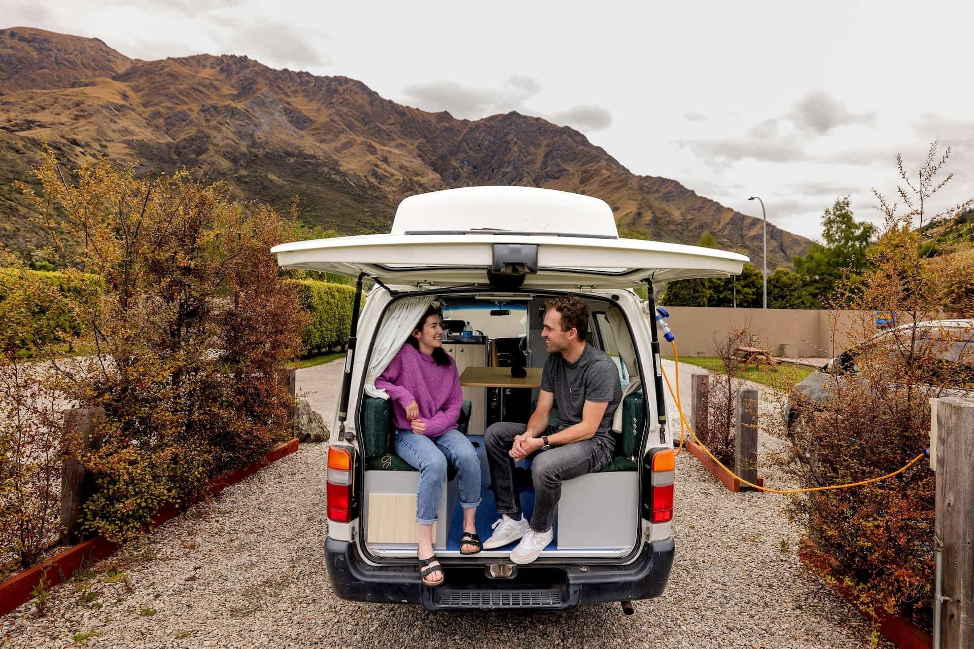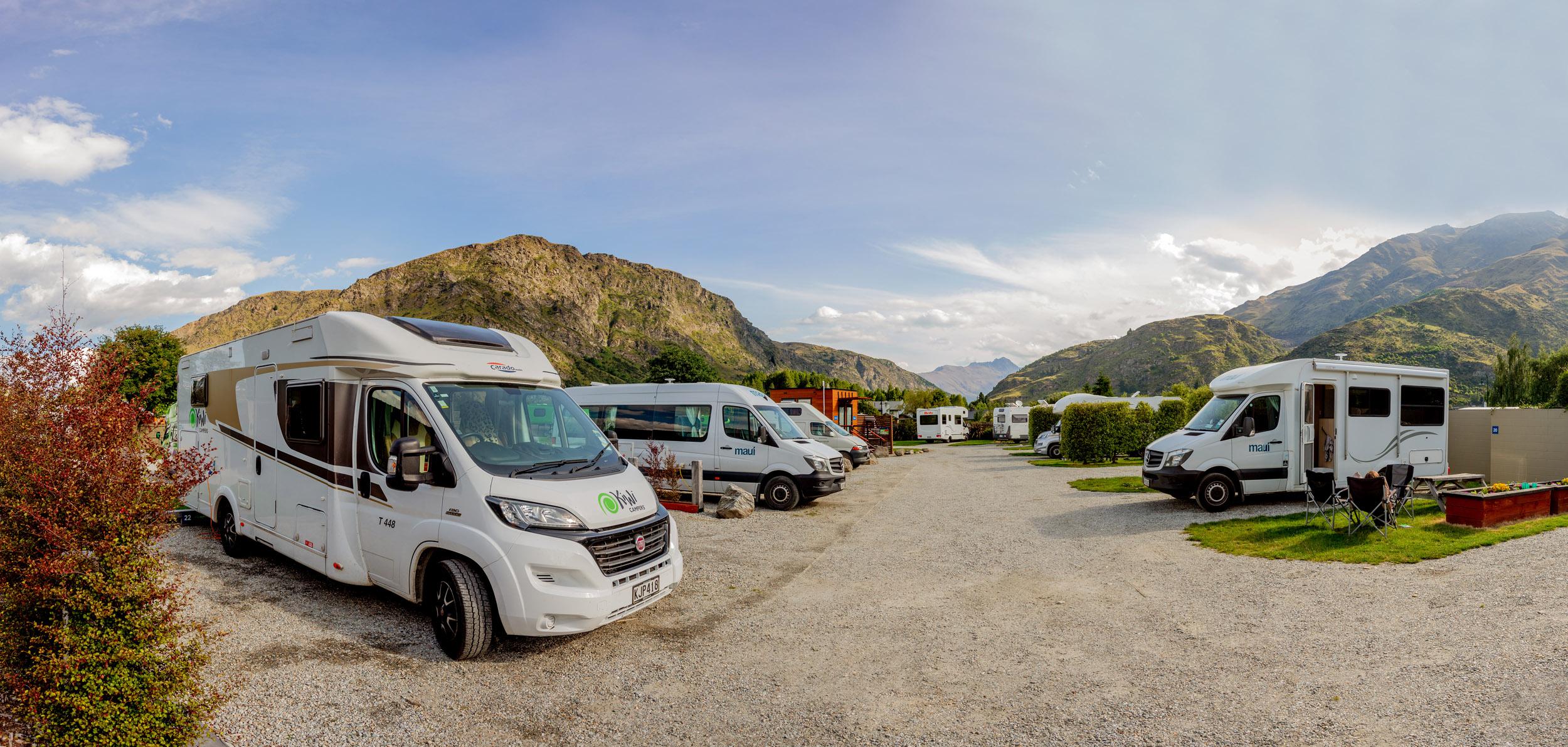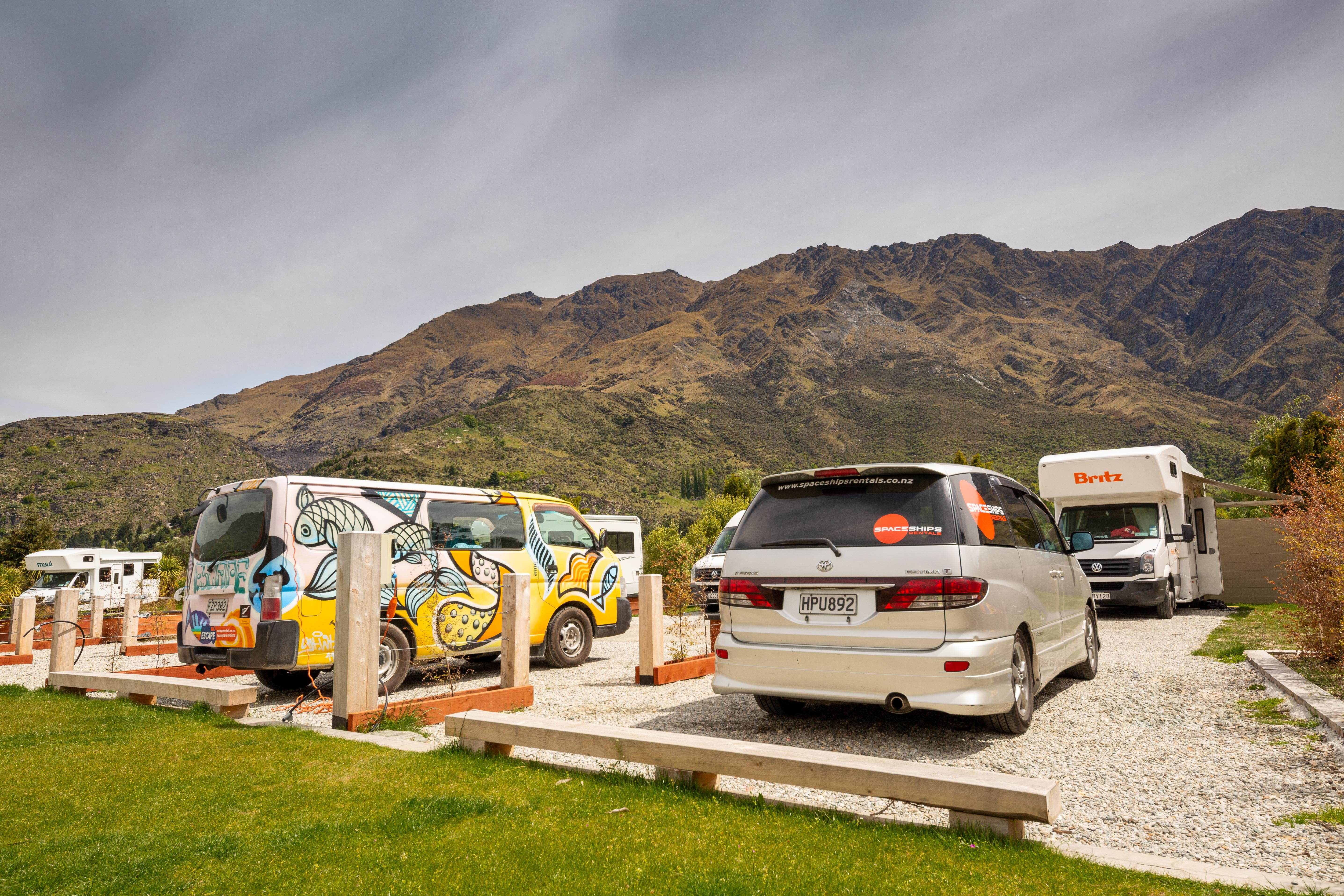 All weather powered sites with stunning alpine views in all directions. Suitable for campervans, RVs, and sleeper vans. If you are travelling with a caravan, please contact us directly so we can allocate the most suitable site for you. Guests are welcome to make use of our shared facilities, including our modern kitchen, spacious dining area with a wood burner, clean bathrooms, and free hot showers. Unlimited free Wi-Fi is also available throughout the park. Other facilities include our onsite hot tub, laundry, and free shuttles to town.